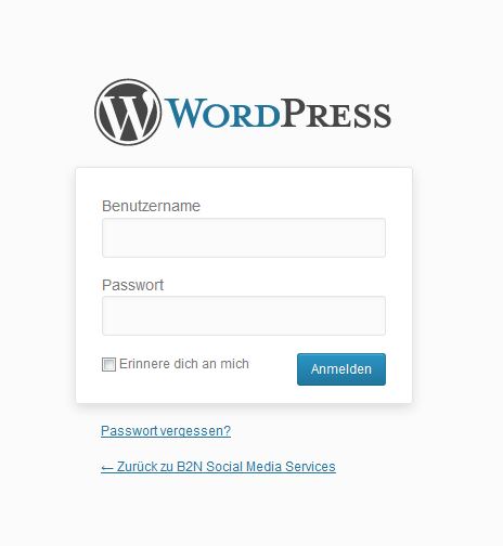 Klicken Sie nun auf „Anmelden“, um zur Anmeldeseite weitergeleitet zu werden. Diese erreichen Sie auch später unter www.ihredomain.de/wp-admin.